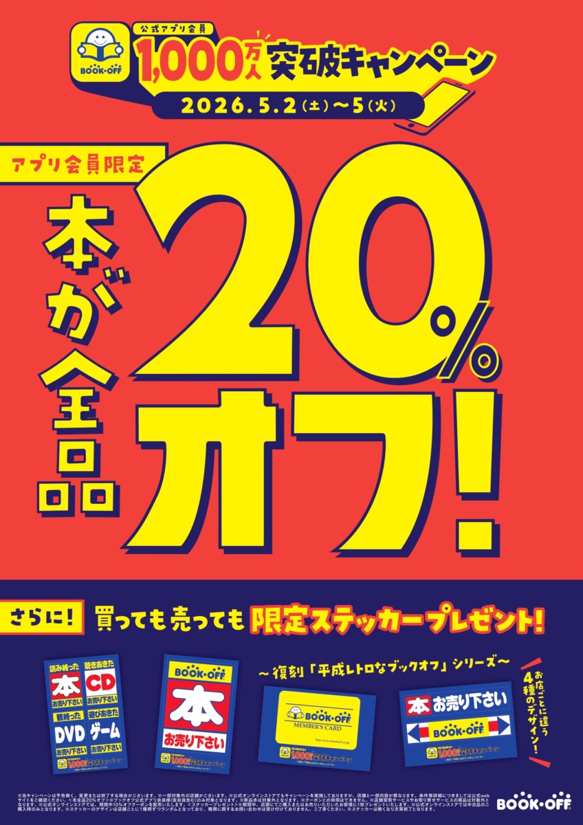 詳しくは→https://www.bookoff.co.jp/cp/app10million/